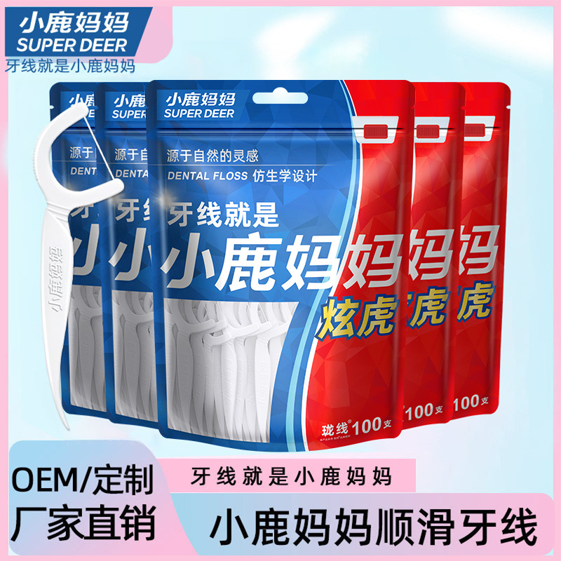 子鹿の母デンタルフロスファミリーパック家庭用ポータブルつまようじライン超精密使い捨てデンタルフロススティック 100 個工場