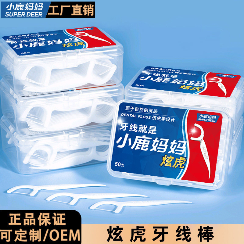 鹿のお母さんの歯の糸の経典の独立して50本を包装します/箱の歯の線の棒は携帯して使い捨てにつまようじの卸売り工場を取り除きます