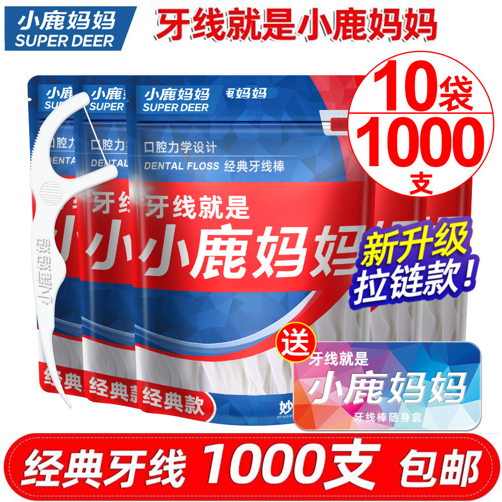 鹿の母の歯の糸の経典の高さの使い捨ての歯の糸の棒の新型のファスナーの袋の歯の糸の1000本は郵送します。