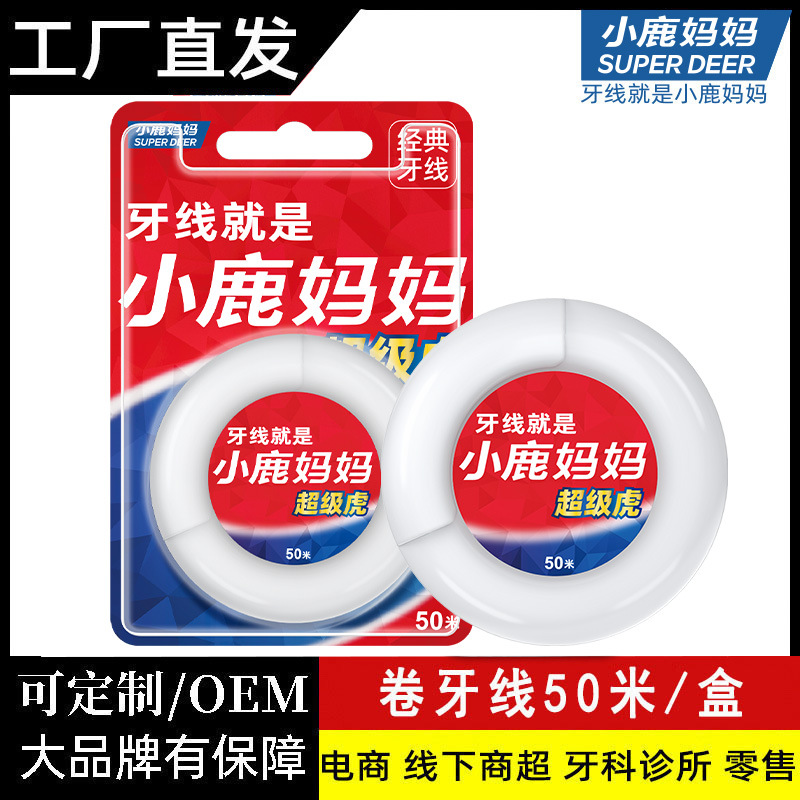 鹿の母の歯の糸の高分子の細い歯の糸は携帯して使い捨ての歯の糸の巻の50M/巻の卸売り工場を持ちます。