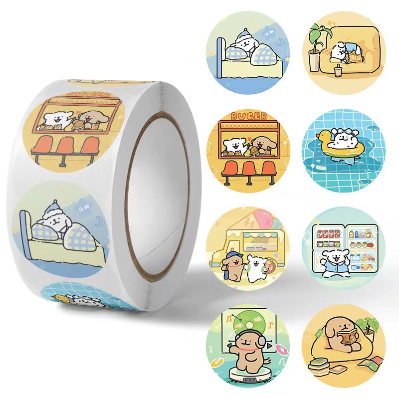 ワンワンチームシールプレゼント500枚1巻包装テープシールクロスボーダー粘着テープ卸売り円形