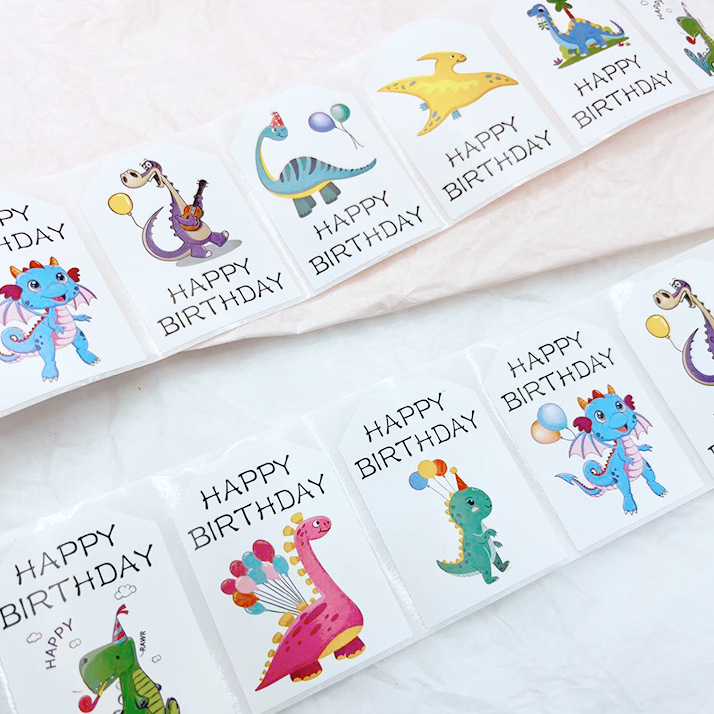 100枚/巻恐竜パーティー長方形シールギフトボックスシールシールシールありがとうシールシール包装装飾ラベルシール