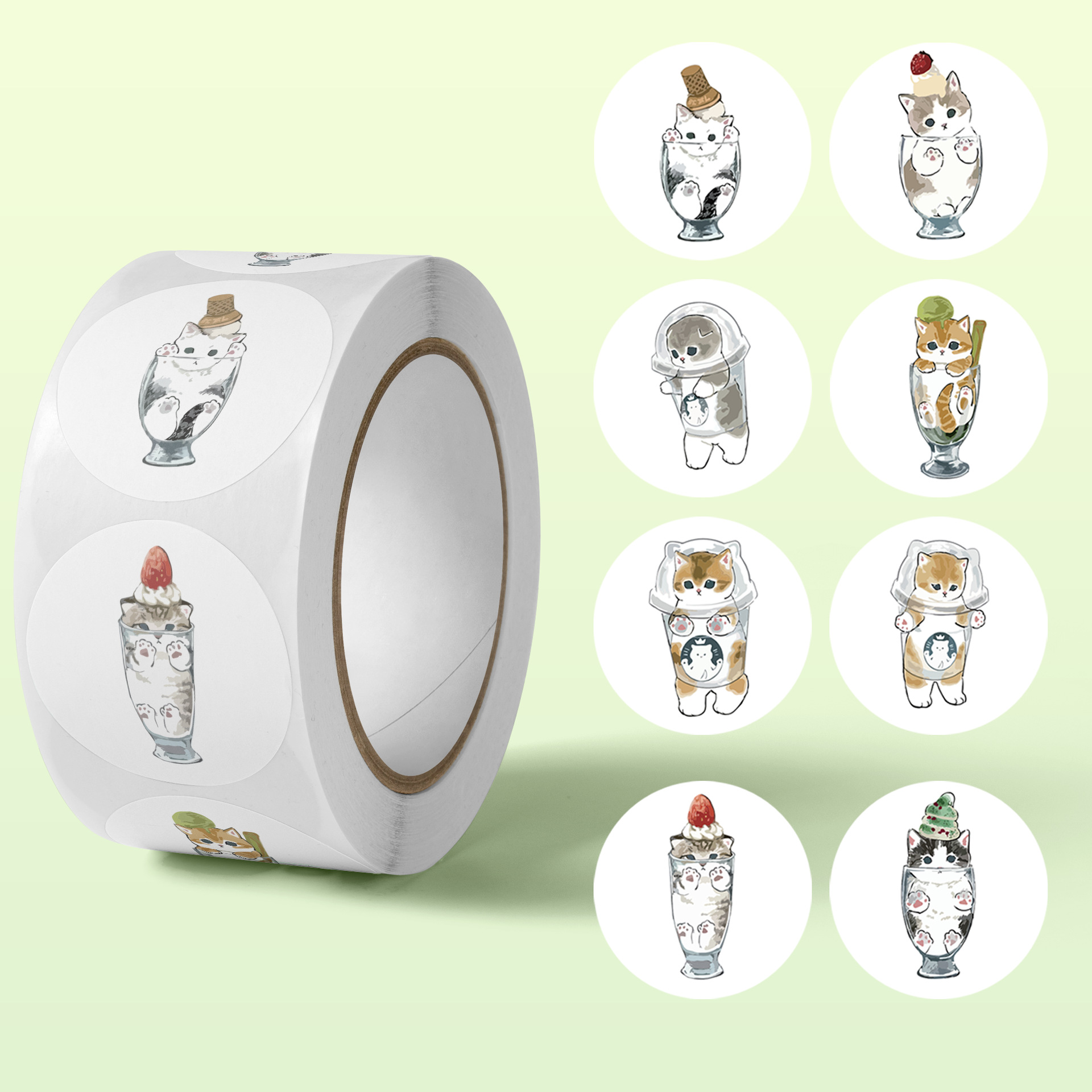 漫画猫カップ子供クリエイティブシールins装飾シールカード壁貼り激励志巻貼り500枚