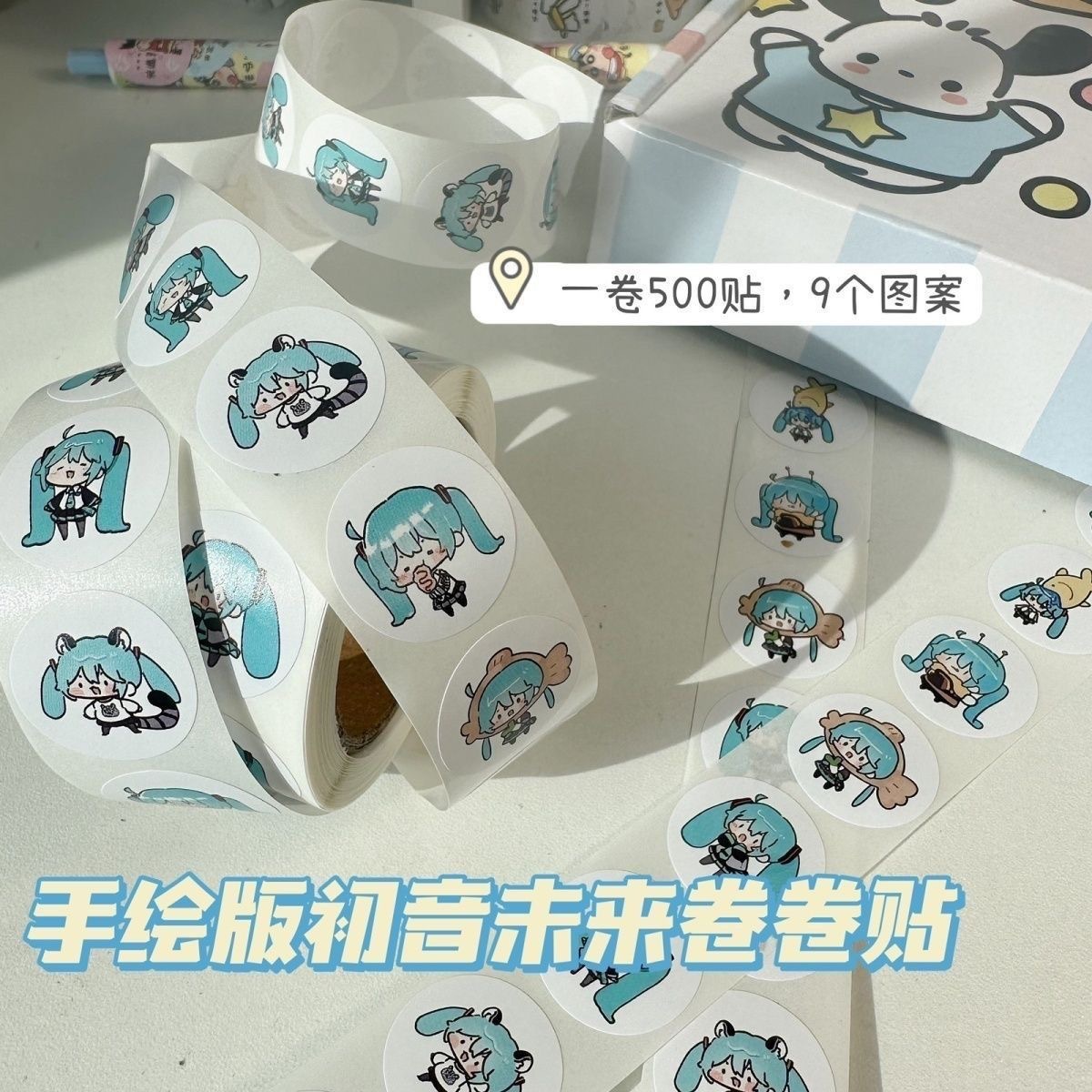 500枚初音ミク巻き飾り手帳アニメ二次元かわいい包装シールシールシールテープ丸点