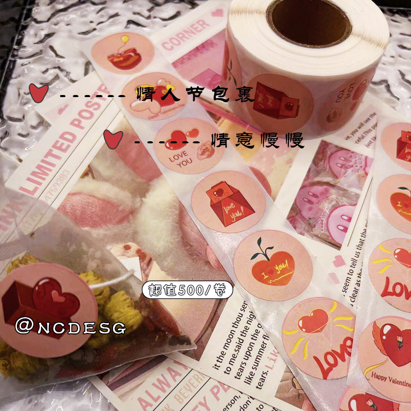 500枚/ロールカラーバレンタインハート型ステッカープレゼントラッピングシールステッカー絵飾りステッカー
