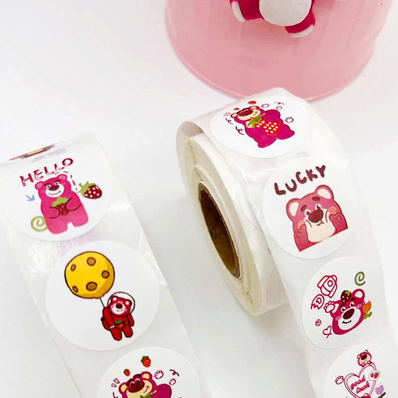 500枚/巻き漫画いちご熊シール粘着円形貼り絵子供玩具ラベル手帳装飾