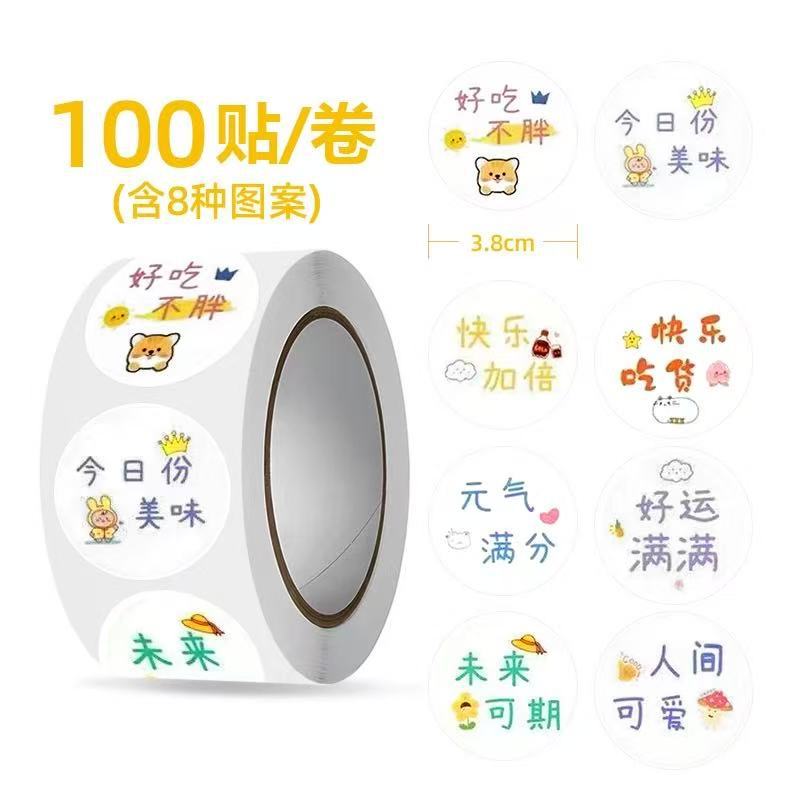 3.8cm巻き網紅爆金表情貼りかわいい文字クリエイティブシール甘いミルクティーカップ貼り出前シール