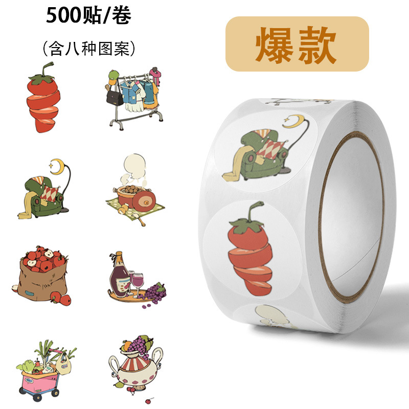 500ステッカー/巻き夏デザートステッカー子供漫画おもちゃ手帐装饰ラベルステッカー