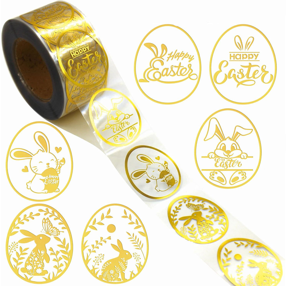 500pcs/巻き透明箔押しシールイースターウサギパーティープレゼント特色卵ラベルシール