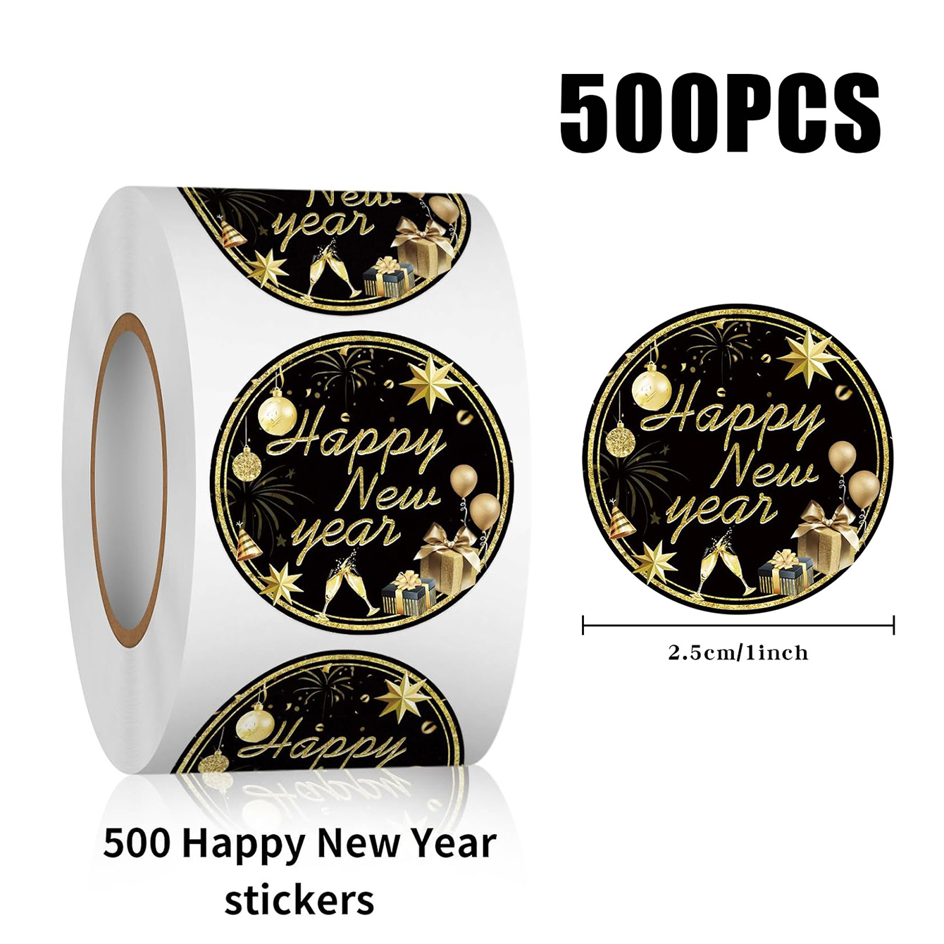 500枚/巻き新年雰囲気シール黒金新年装飾シール