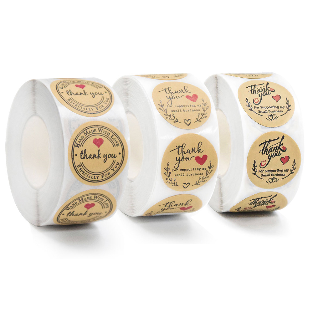500ステッカー/ロール円形クラフト纸ステッカーベーキングラブステッカー手袋装饰的な包装感谢