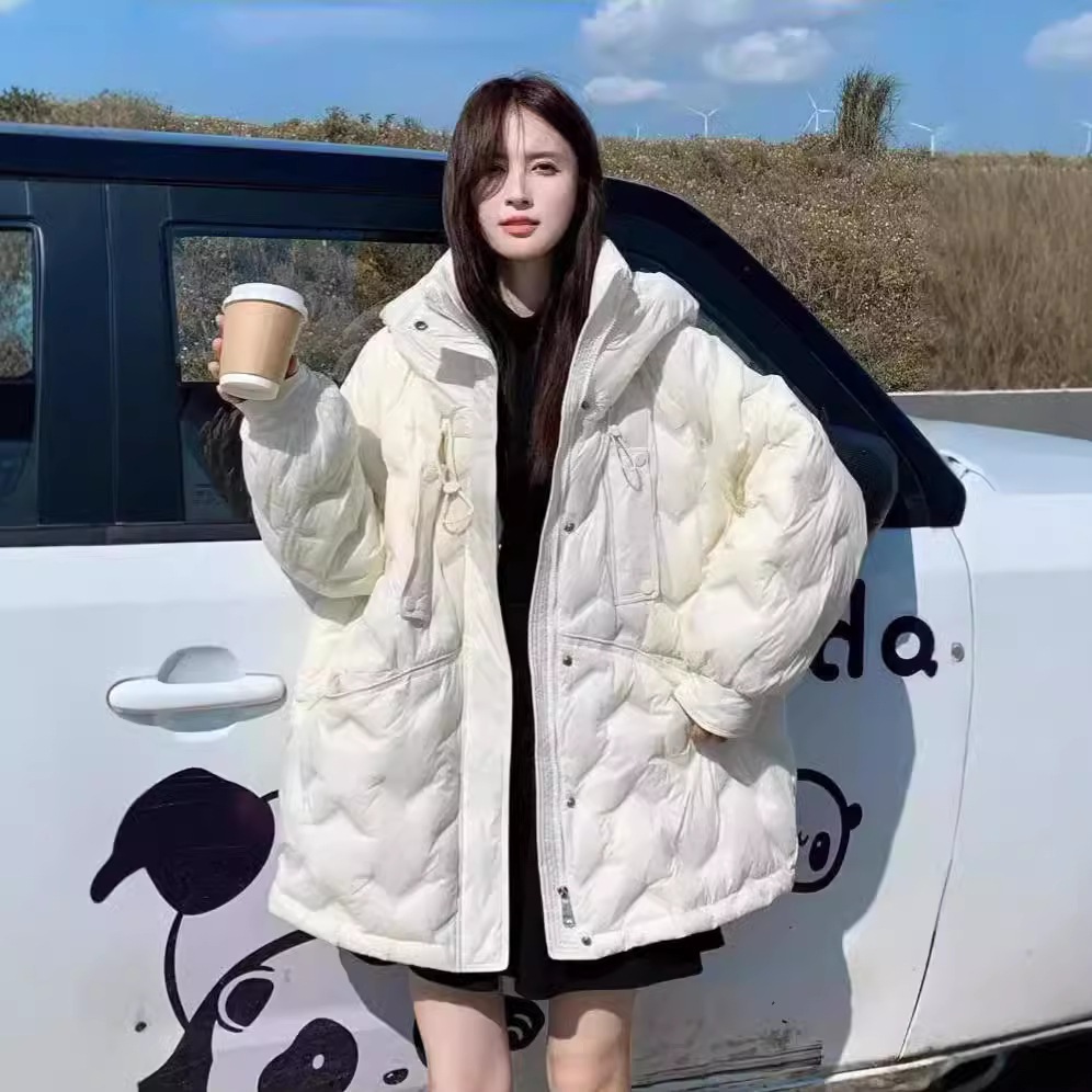 小柄な女性向け、韓国風ゆったりとした白いダックダウンのショート丈ダウンジャケット(2025年モデル)