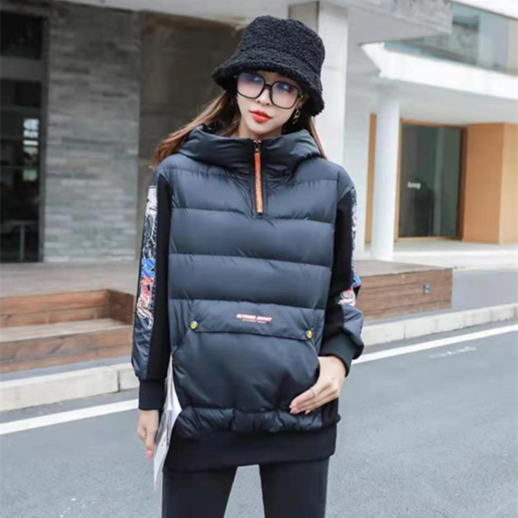 在庫処分セール!!秋冬カジュアルプリント90%ホワイトダックダウンスウェットプルオーバージャケット女児用