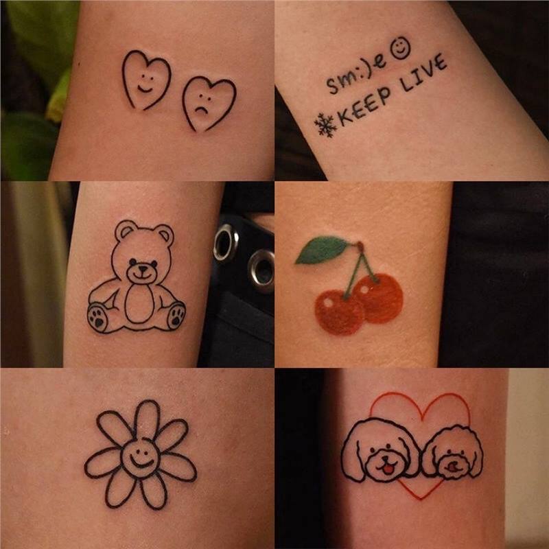 カラーラインの熊の刺青は学生の男女の防水の持続的なシミュレーションの漫画のかわいいins風の刺青のシールを貼ります。