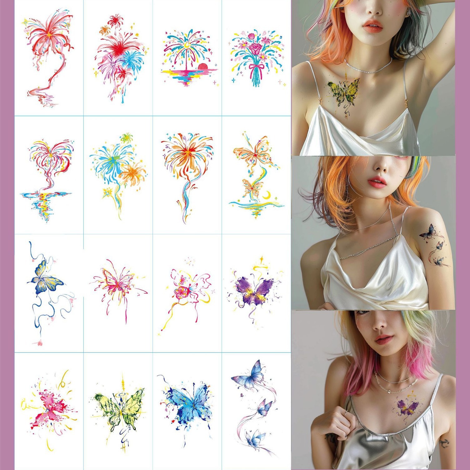 手描きの色の花火の蝶の紋章は小さい大衆のins風の防水の持続的な腕の鎖骨の個性の紋章を貼って女性を貼ります。