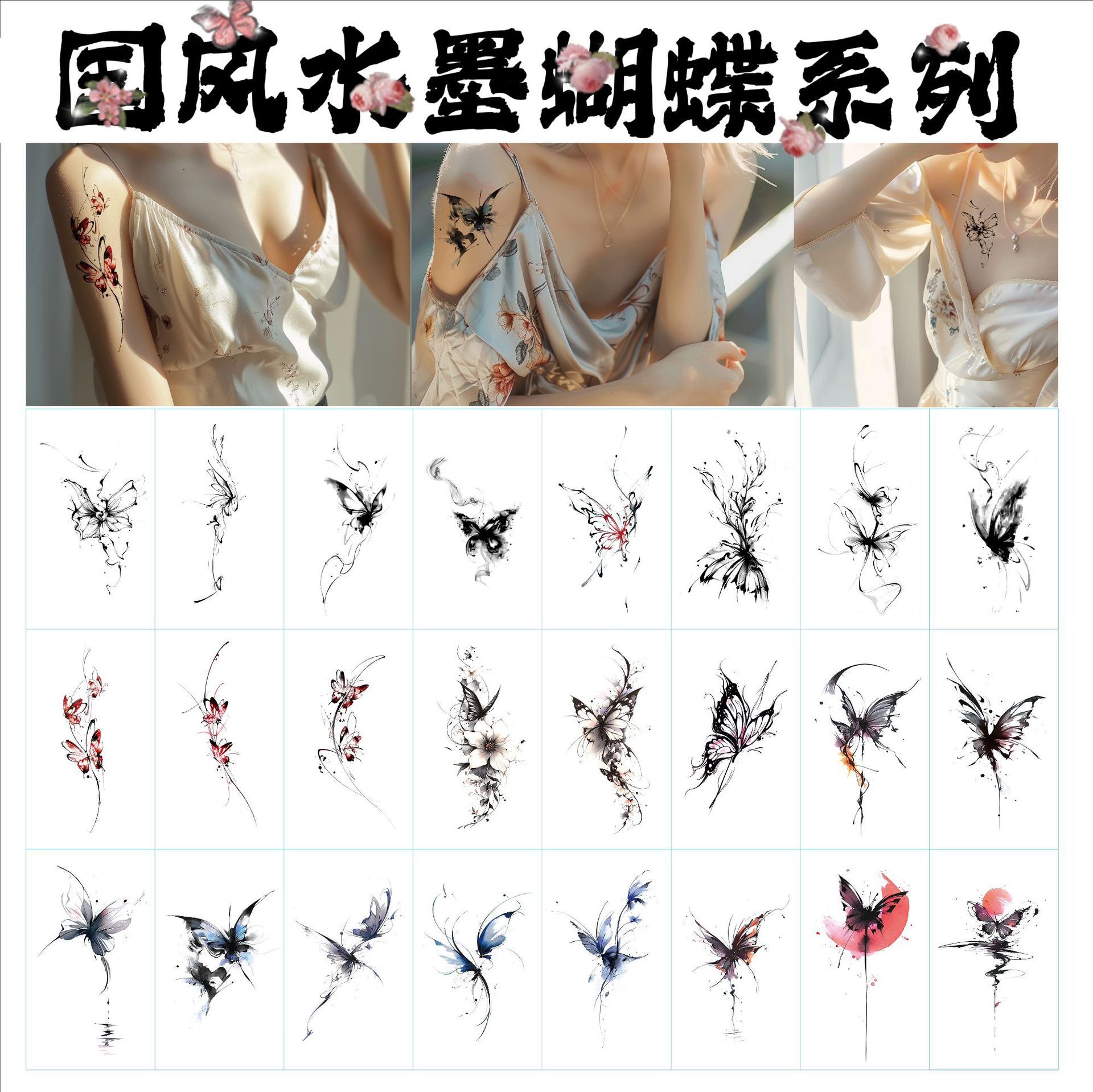 美しい水墨風蝶タトゥーステッカーハイエンドイン防水長持ち女性ダークパーソナライズ鎖骨妖精ステッカー