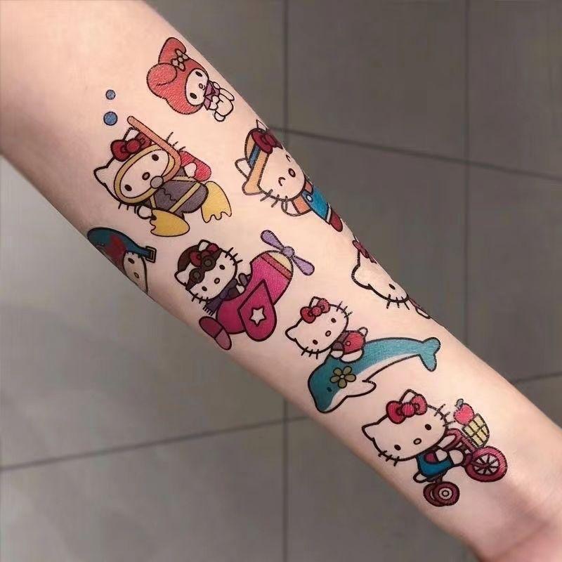 新しいハローキティ猫カラー入れ墨ステッカー防水长持ち漫画少女子供ハローキティ入れ墨ステッカー
