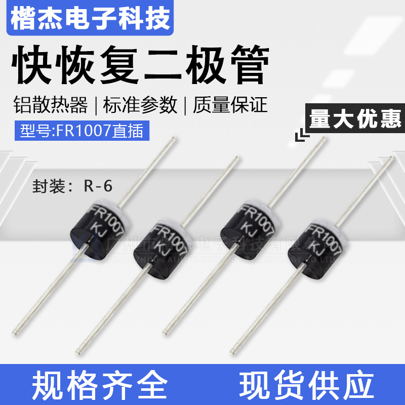 クイックリカバリダイオードFR1007インラインR-6 10A1000Vバルク足付きチップKJ