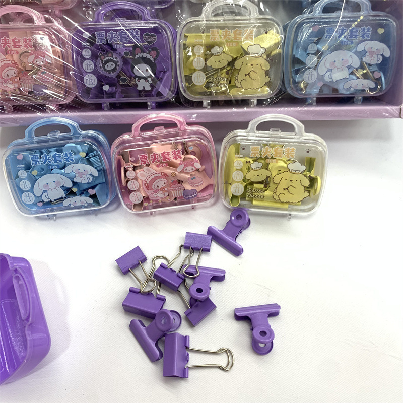 外国貿易新沐箱入れ札入れセットクロミ10入カラーロングテール固定クリップ収納ケース書類クリップ