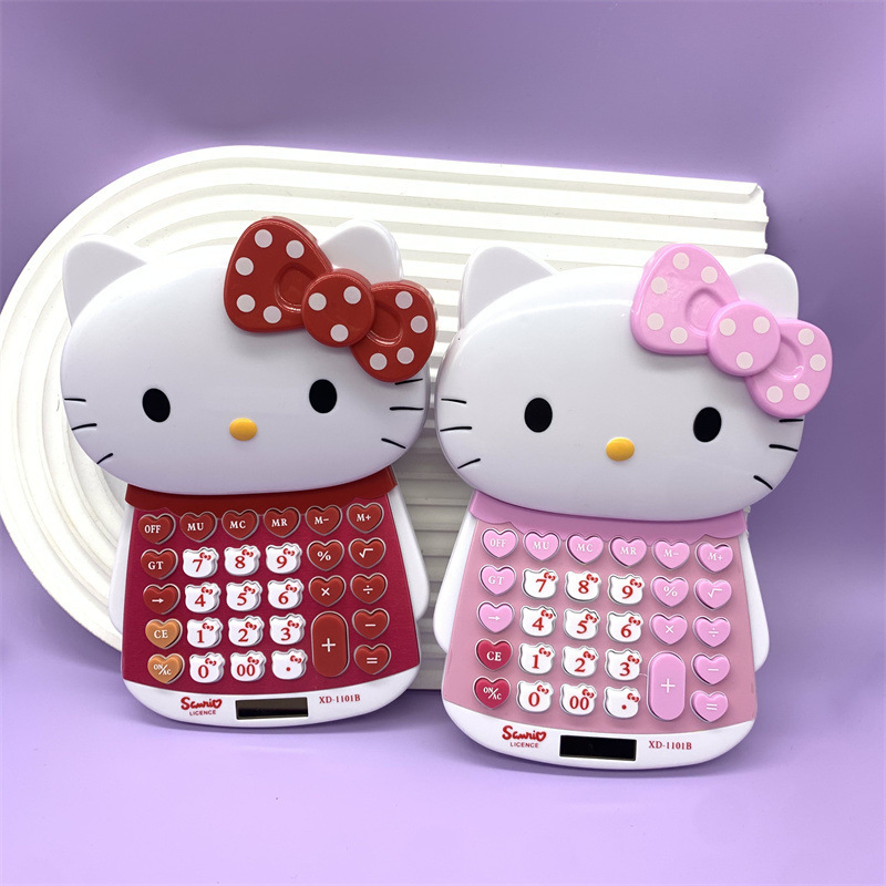 外国貿易の大きい猫の頭の公仔の形のスライドカバーの双電源の計算機の漫画の12桁のkt猫はコンピュータのバッチをカバーします。