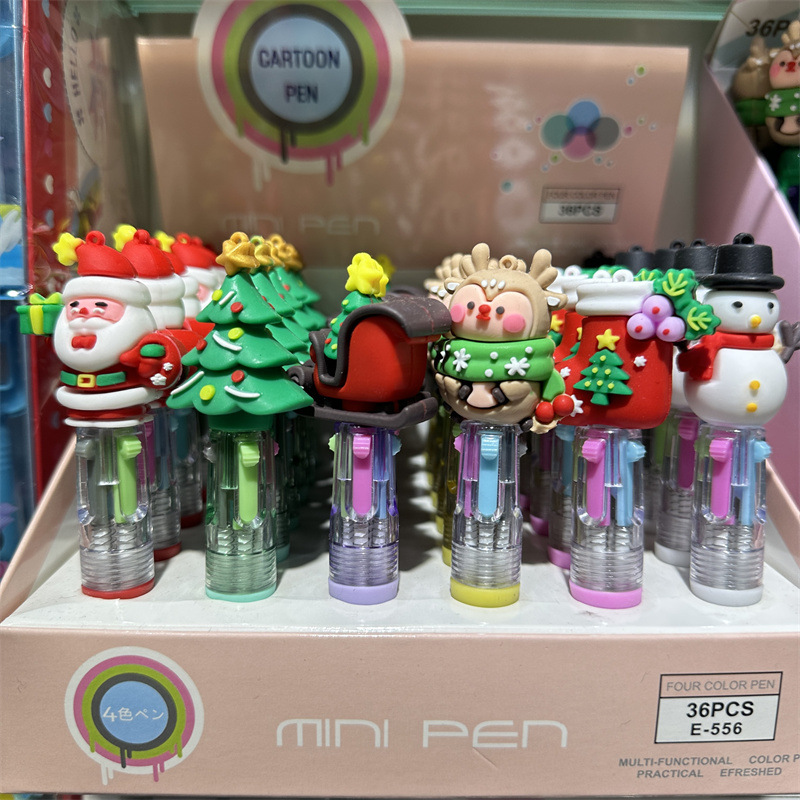 外国貿易クリスマステーマサンタクロースミニ四色ボールペンヘラジカクリスマスツリークリスマス靴下トランペット4色ペン