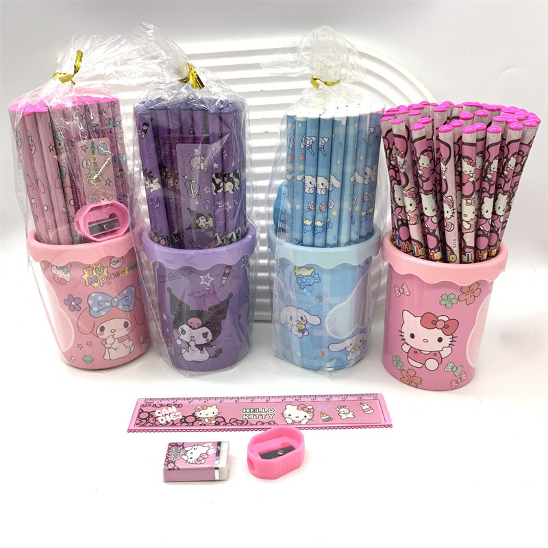 クロスボーダー三麗鴎クロミ筆立て50本入木鉛筆直尺消しゴム筆削り幼稚園入学プレゼント