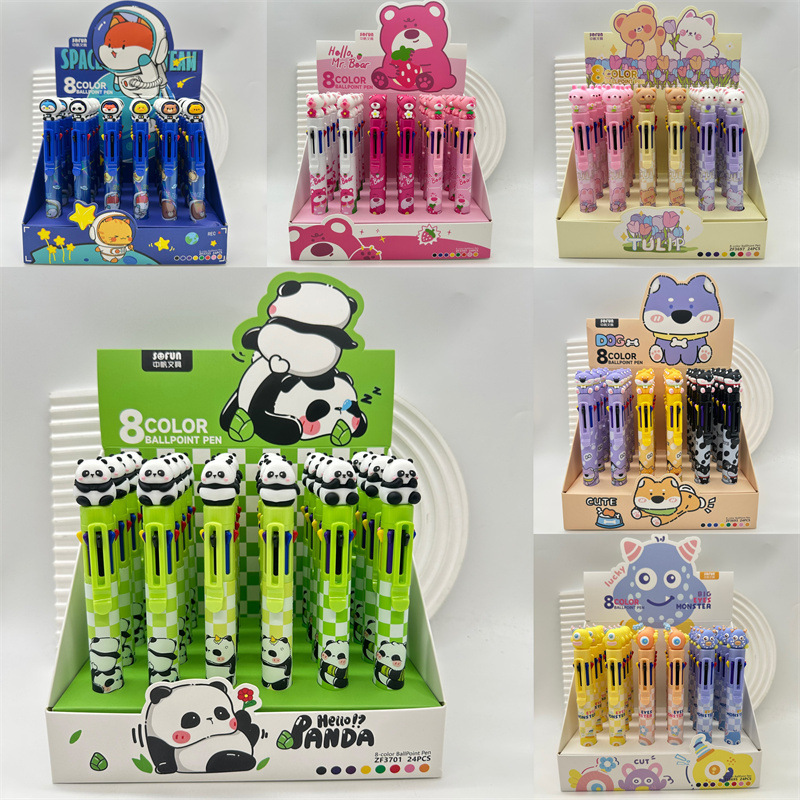 観光地区のかわいい漫画のパンダの赤ちゃんの8色のボールペンの太っている大きいパンダの多色のペンの竹のパンダの八色のペン