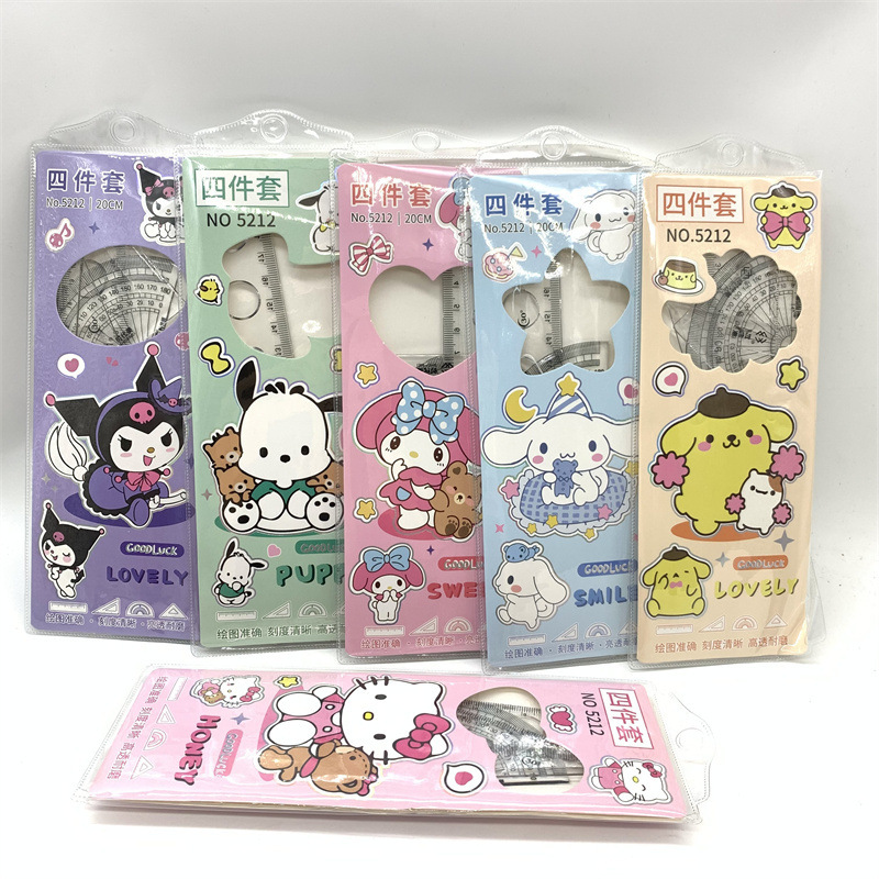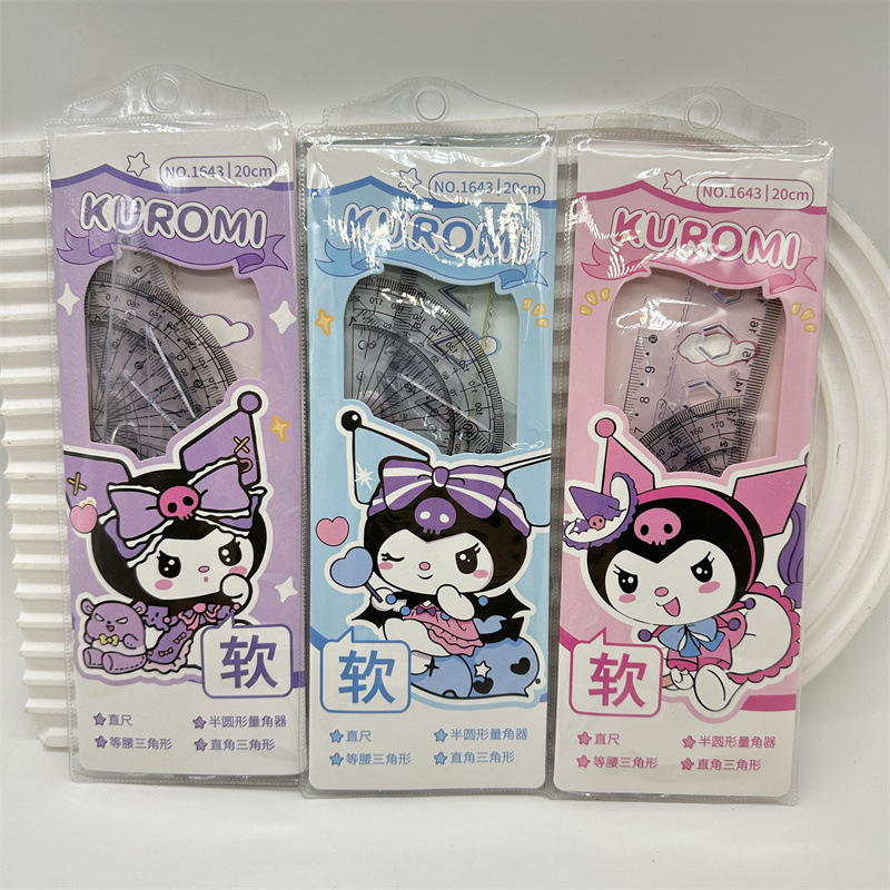 外国貿易サンリオソフトジャケットルーズクーロ20cm定規サンリオ小悪魔ソフト三角板4点セット