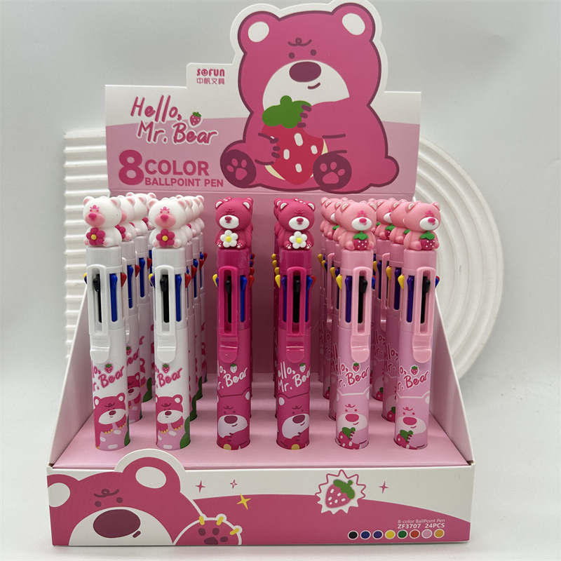 クロスボーダーのシリカゲルのイチゴの熊の8色のボールペンの桜の萌えのペットの動物の熊の多色のペンのイチゴの熊の8色のペン