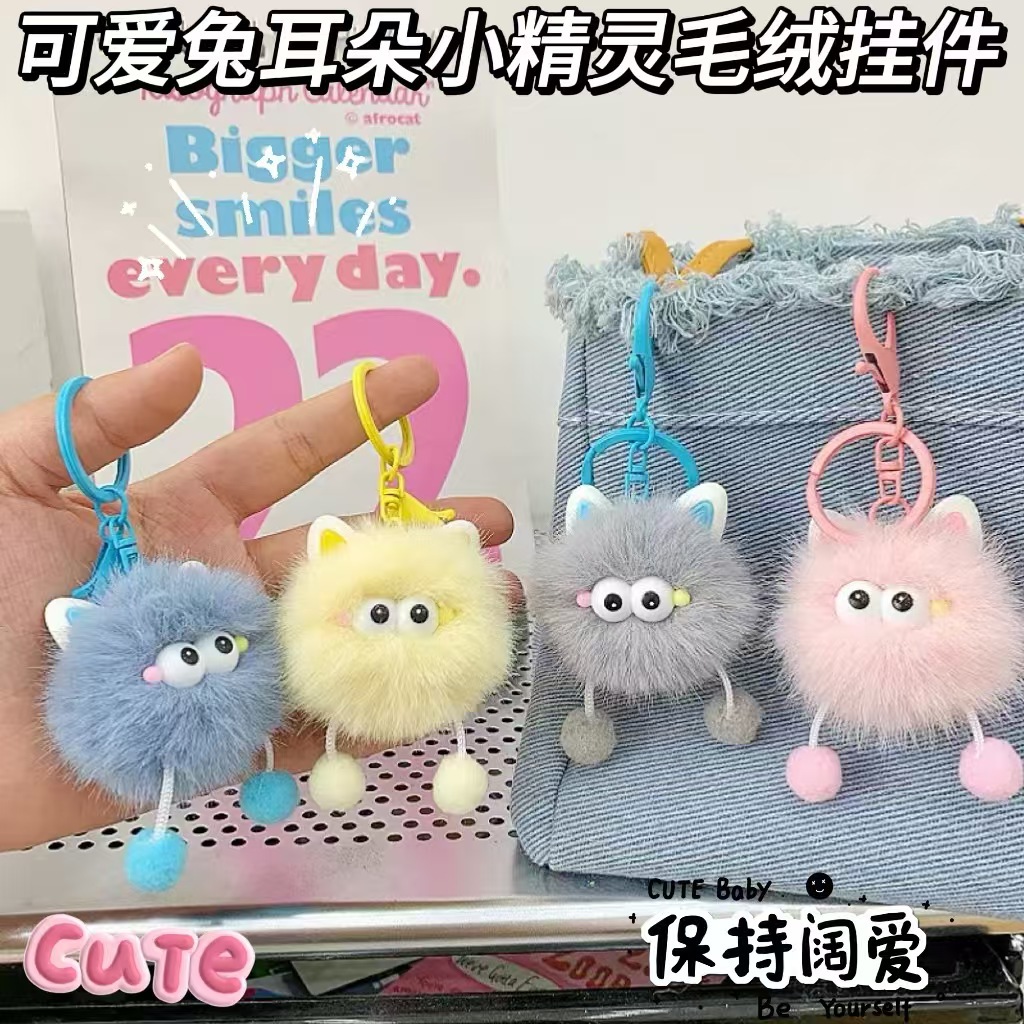 模造ミンク耳エルフインターネット有名人ぬいぐるみペンダント車のキーホルダー漫画バッグカップル親友ペンダントギフト