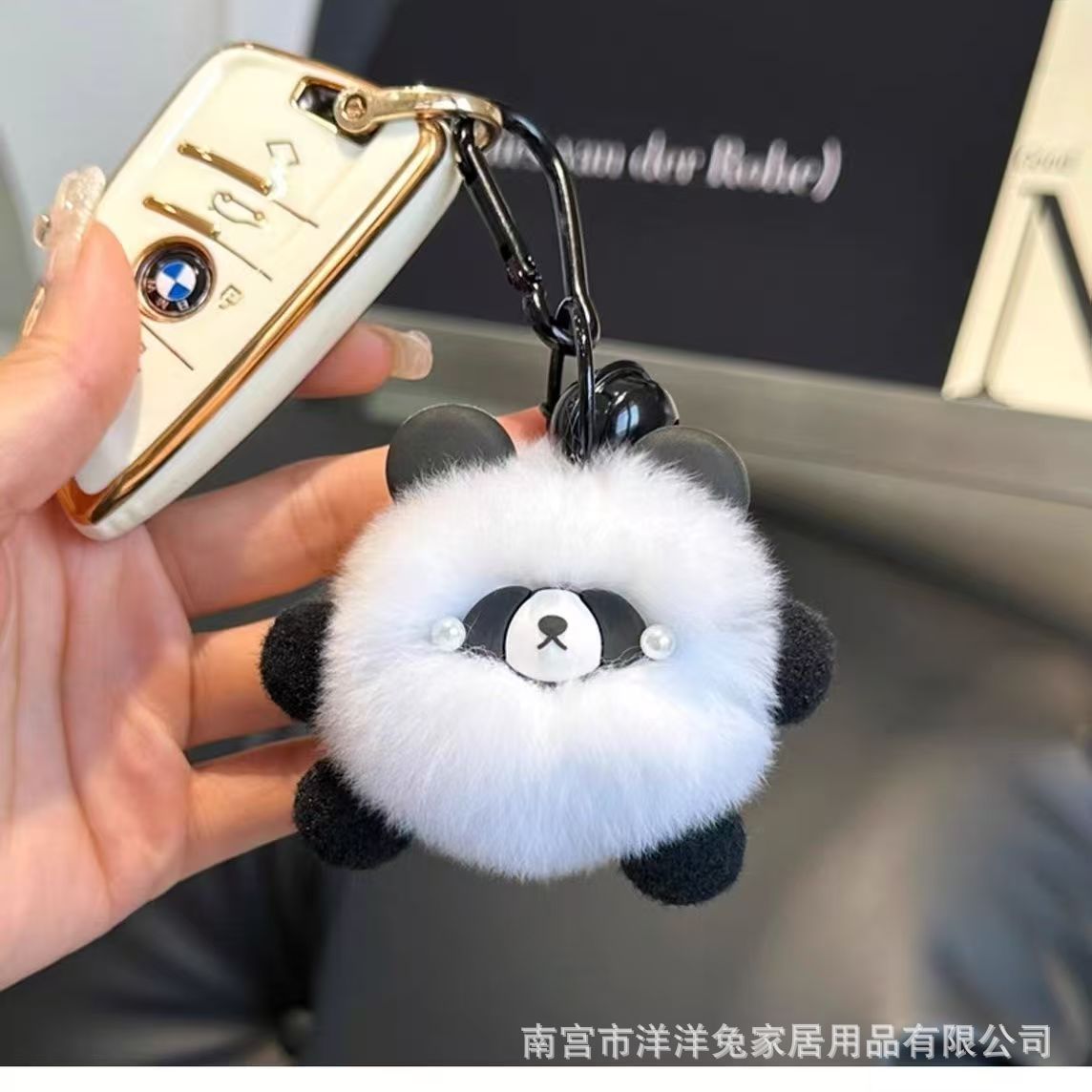 かわいいのは、ウサギの毛のアヒルの車のキーホルダーに似ています。
