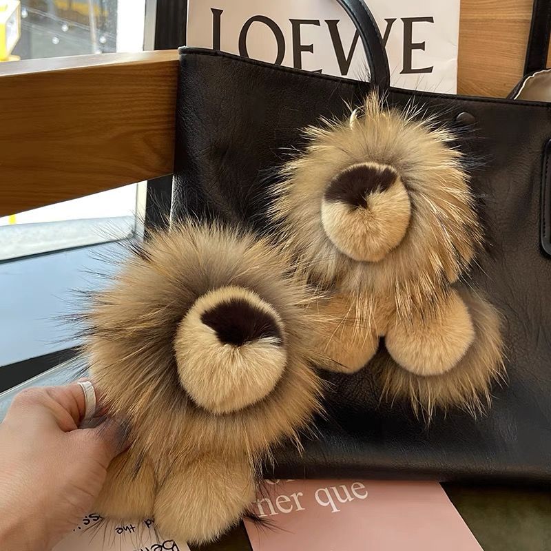 【RURUA】韓国のウサギの毛のタヌキの毛の小さいライオンのキーホルダーのペンダントの毛のふわふわしている公の子のカバンのペンダント