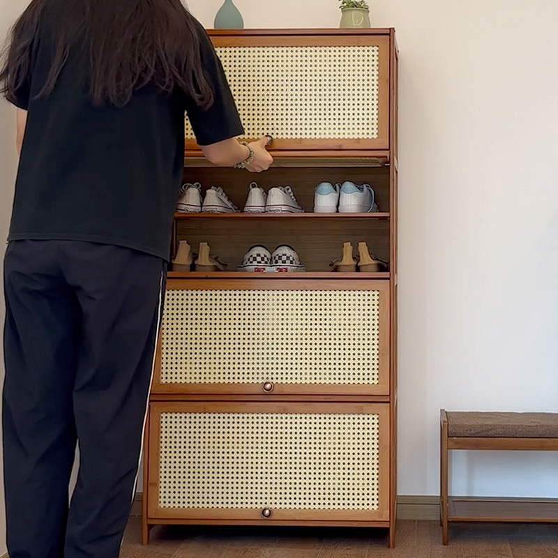 日本式シンプル藤編み防塵下駄箱収納下駄箱家庭用玄関玄関キャビネット小戸型大容量一体キャビネット