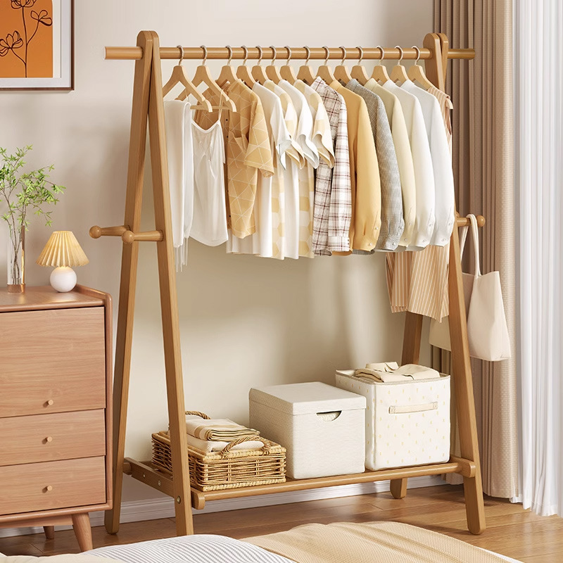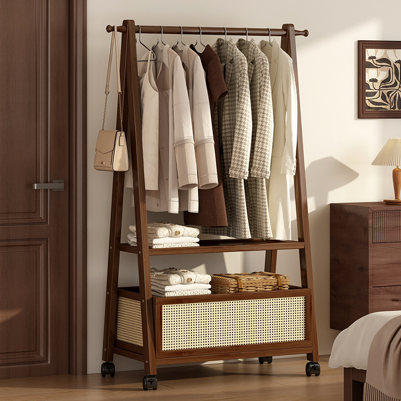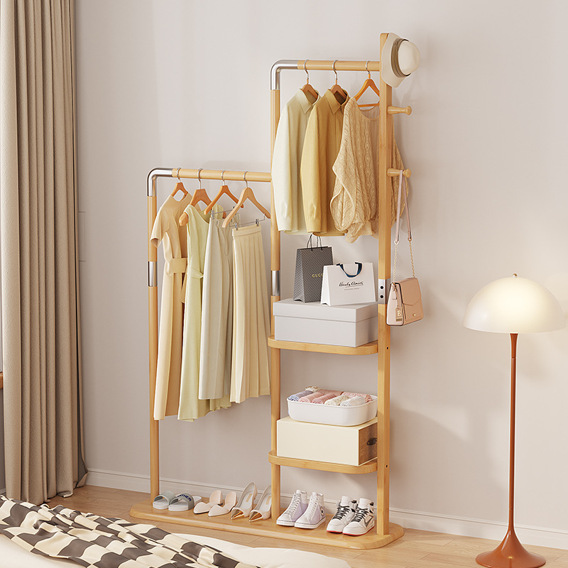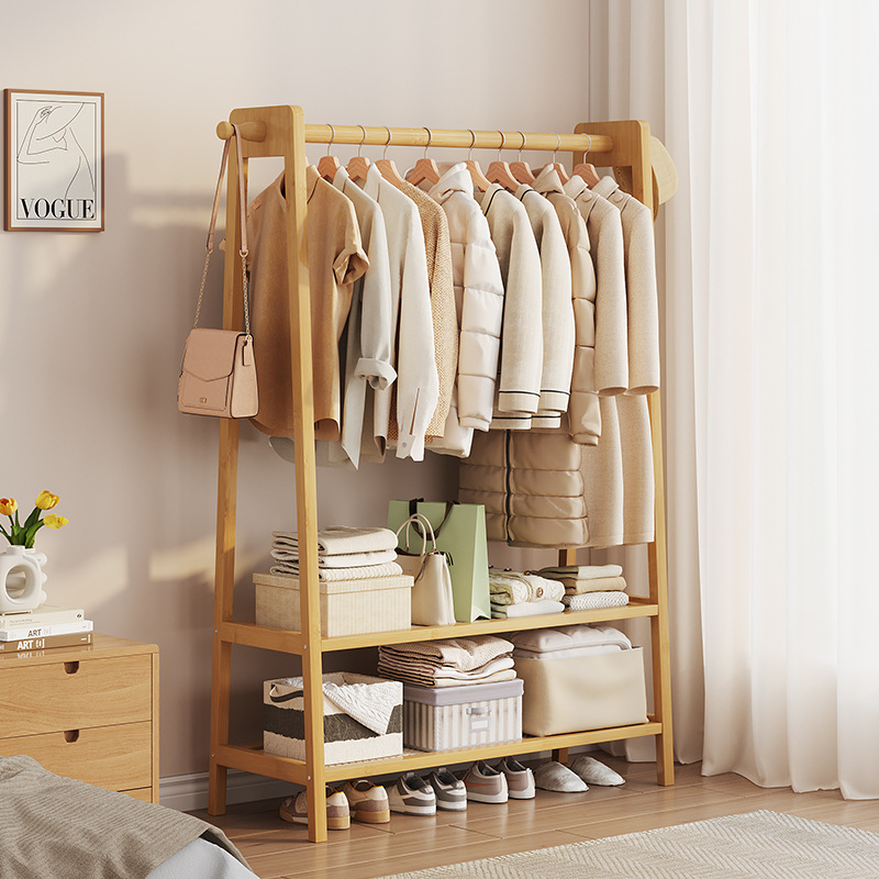 床置き移動ハンガー多機能簡易服ハンガー寝室家庭用楠竹ハンガー衣類収納棚