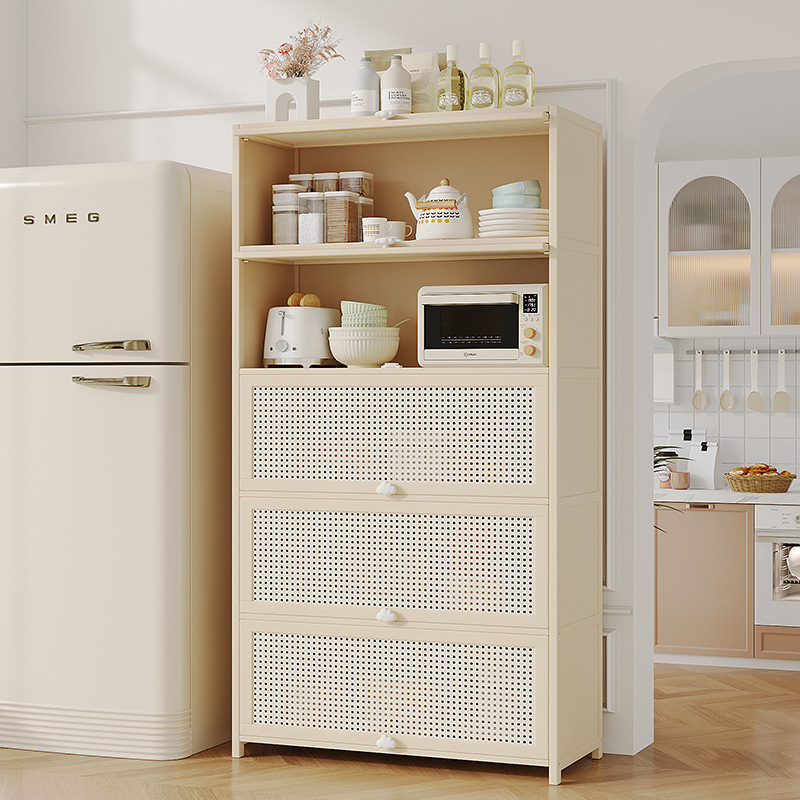 クリーム風キッチン棚床置き多層ロッカー家庭用多機能調味料収納棚食器棚戸棚