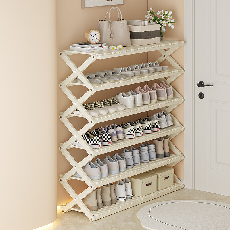 クリーム風折り畳み可能な靴棚の入り口に簡易多層の靴棚を収納します。