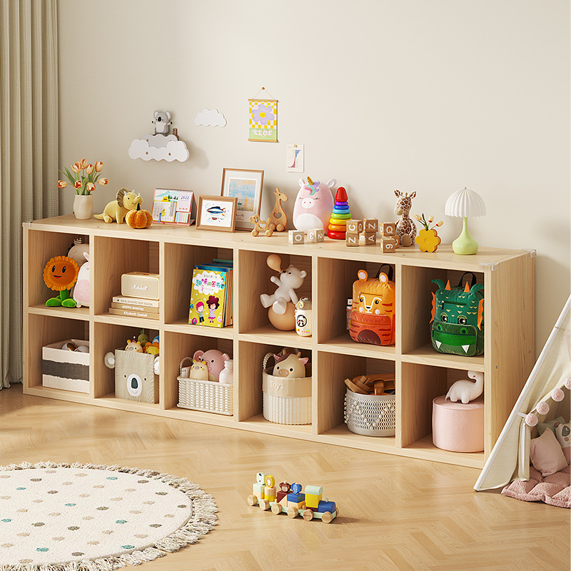 全実木本棚物置棚家庭用本棚の床置き組み合わせ格子キャビネットの低い棚の客間の松木の収納棚