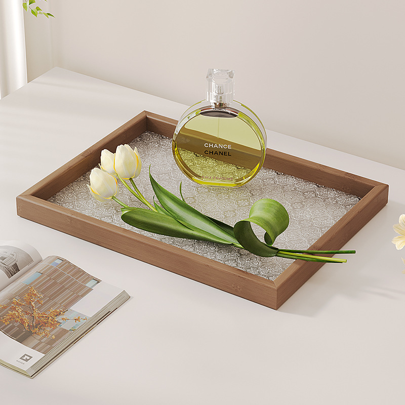 国境を越えたベゴニア花エンボスガラスアクリルトレイ果物菓子和式収納盤長方形茶トレイ