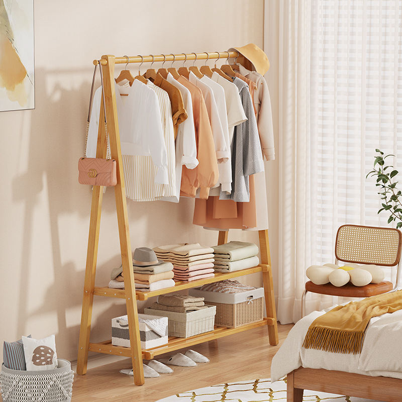 簡易ハンガー床置き式家庭用洗濯棚寝室内シンプル現代実木省スペースフードラック