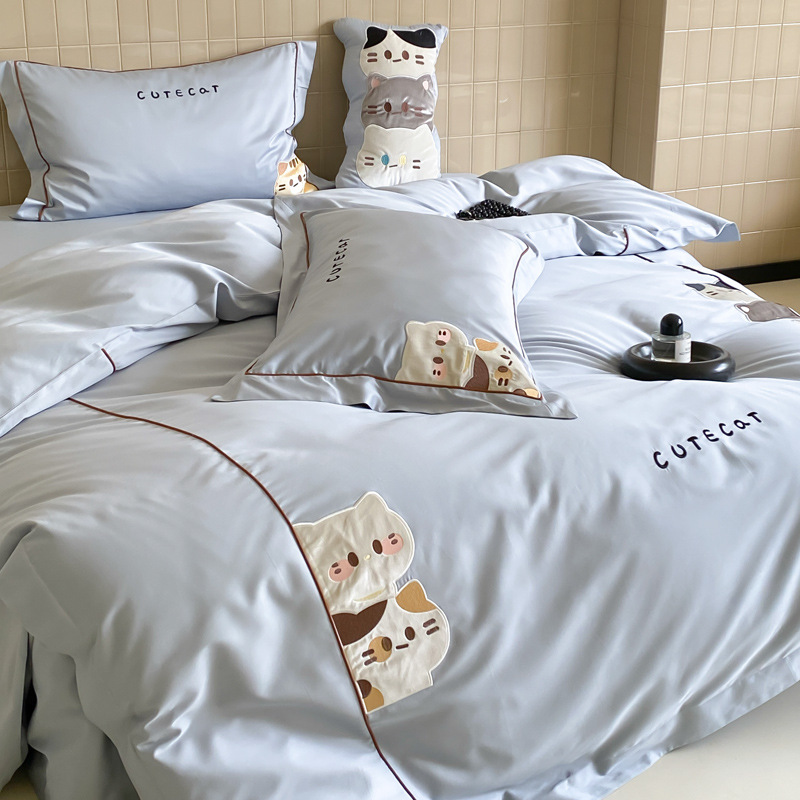 軽豪華少女心蝶刺繍四点セット100本の双股長絨綿清新布団カバー寝室純綿ベッド用品