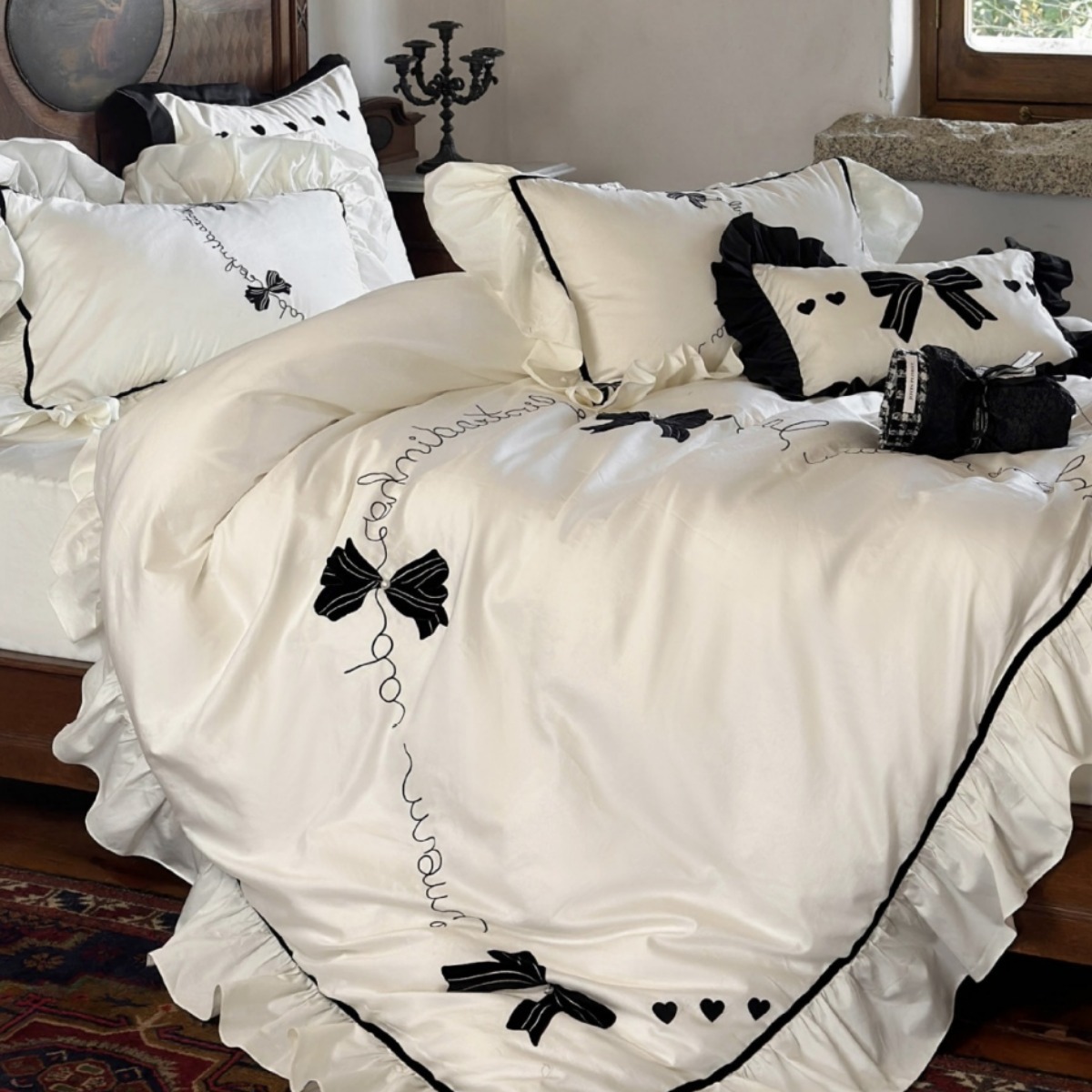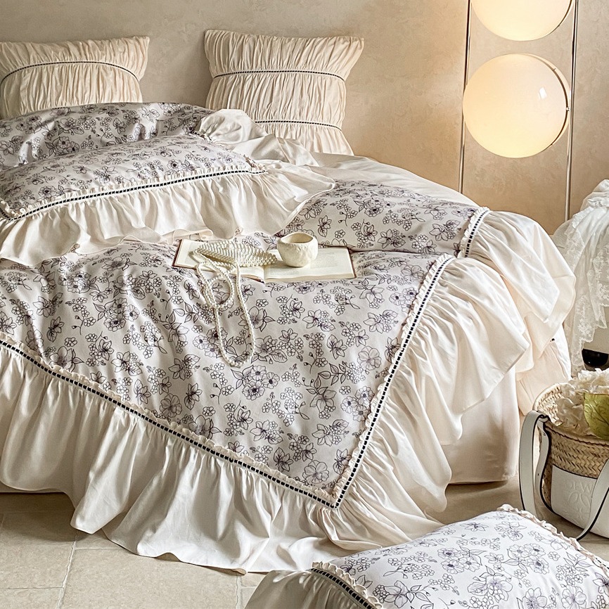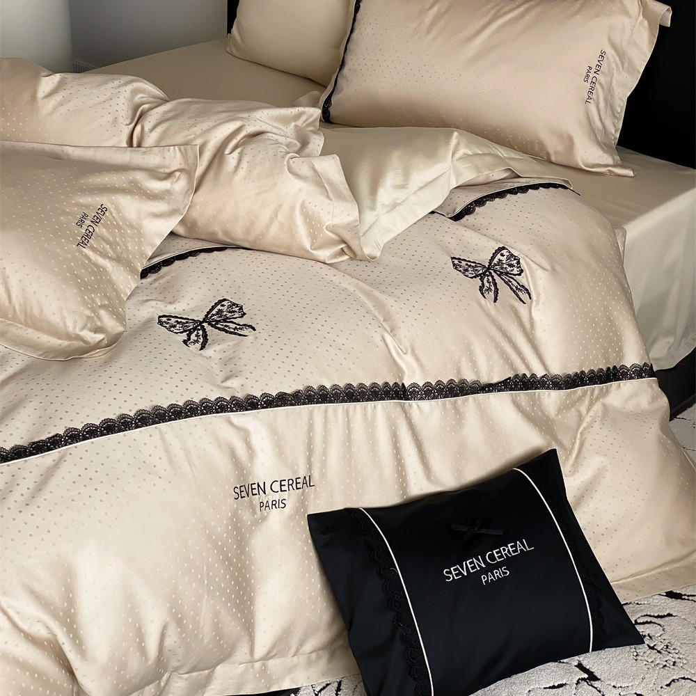 少女心小衆四点セット100s天糸綿ジャカード刺繍レースベッド用品1.8m布団シーツ