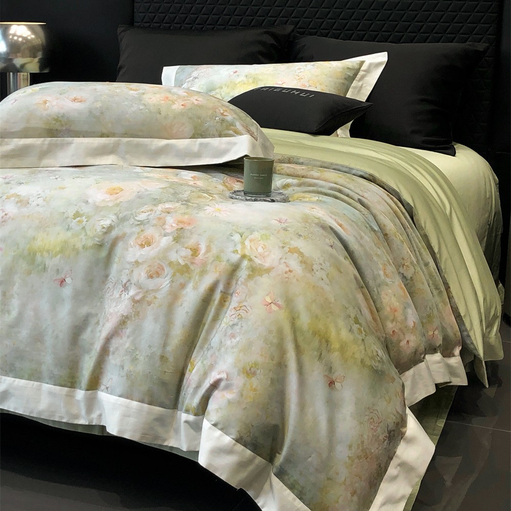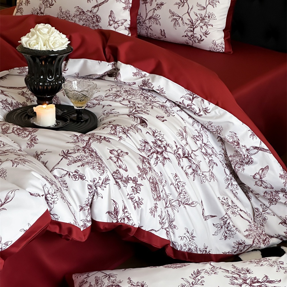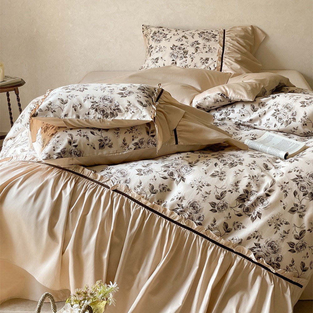 レトロ純綿100s長綿花プリント4点セット純綿ロマンチック小衆シーツ寝室布団カバーベッド用品