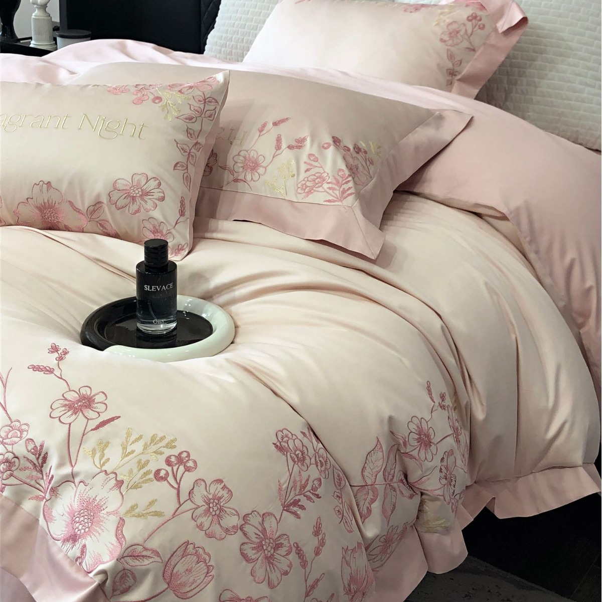 100s双股長絨毛綿花卉刺繍四点セット少女心田園風布団カバー純綿シーツ二人用ベッド用品
