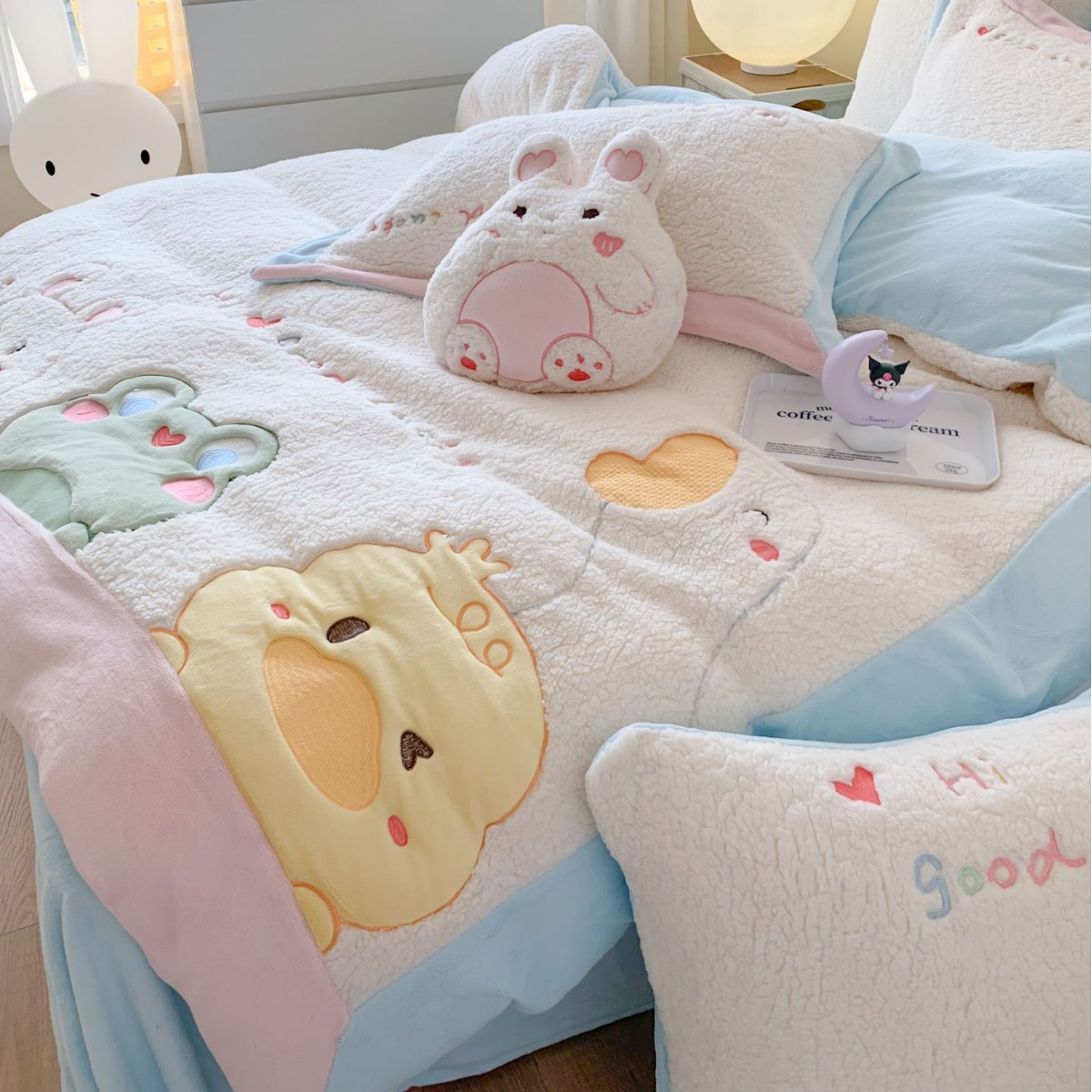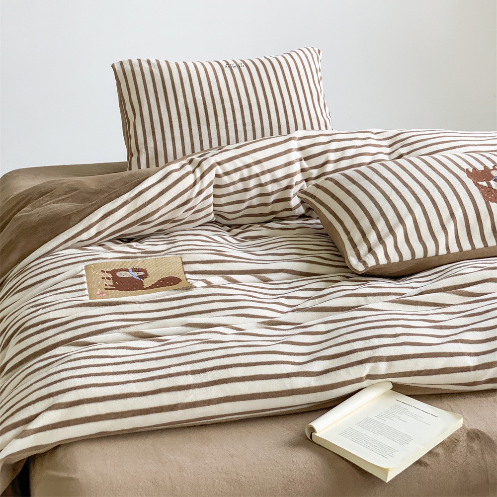 ストライプシリーズ古典的な3dデジタルプリント全艶消しA類牛乳パイル生地刺繍ベッド笠金四点セット