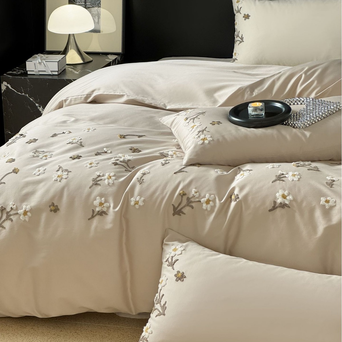 エレガントでソフトで軽い高級スタイルのサテン長繊維綿タオル刺繍寝具純綿家庭用4点セット