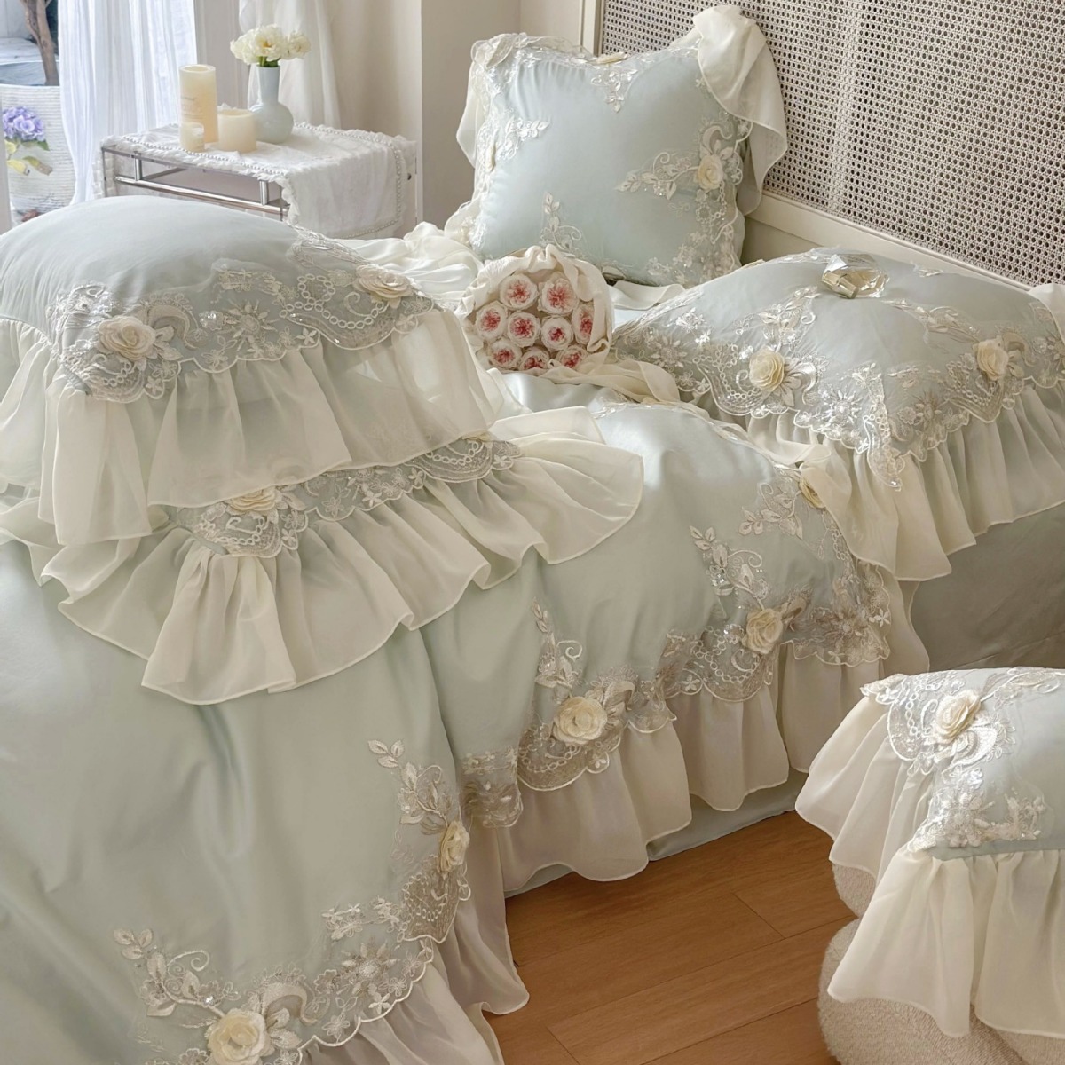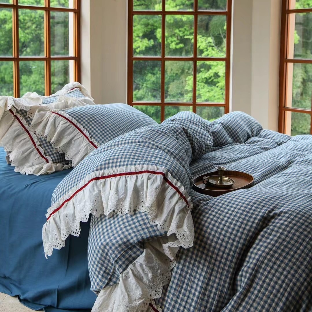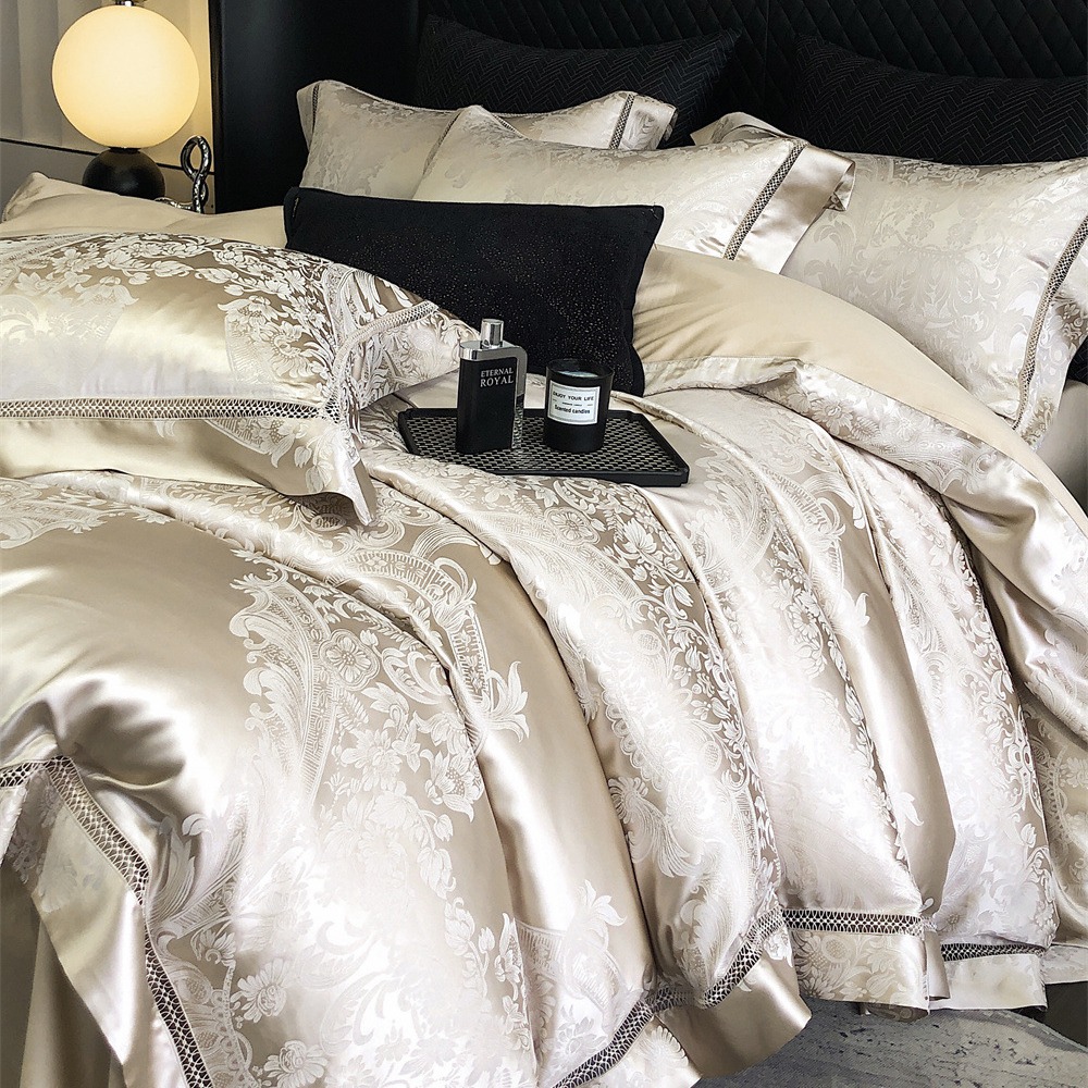 ライトラグジュアリースタイルモダンシンプルジャカードピマコットン中空レースステッチ春夏新作ベッド4点セット