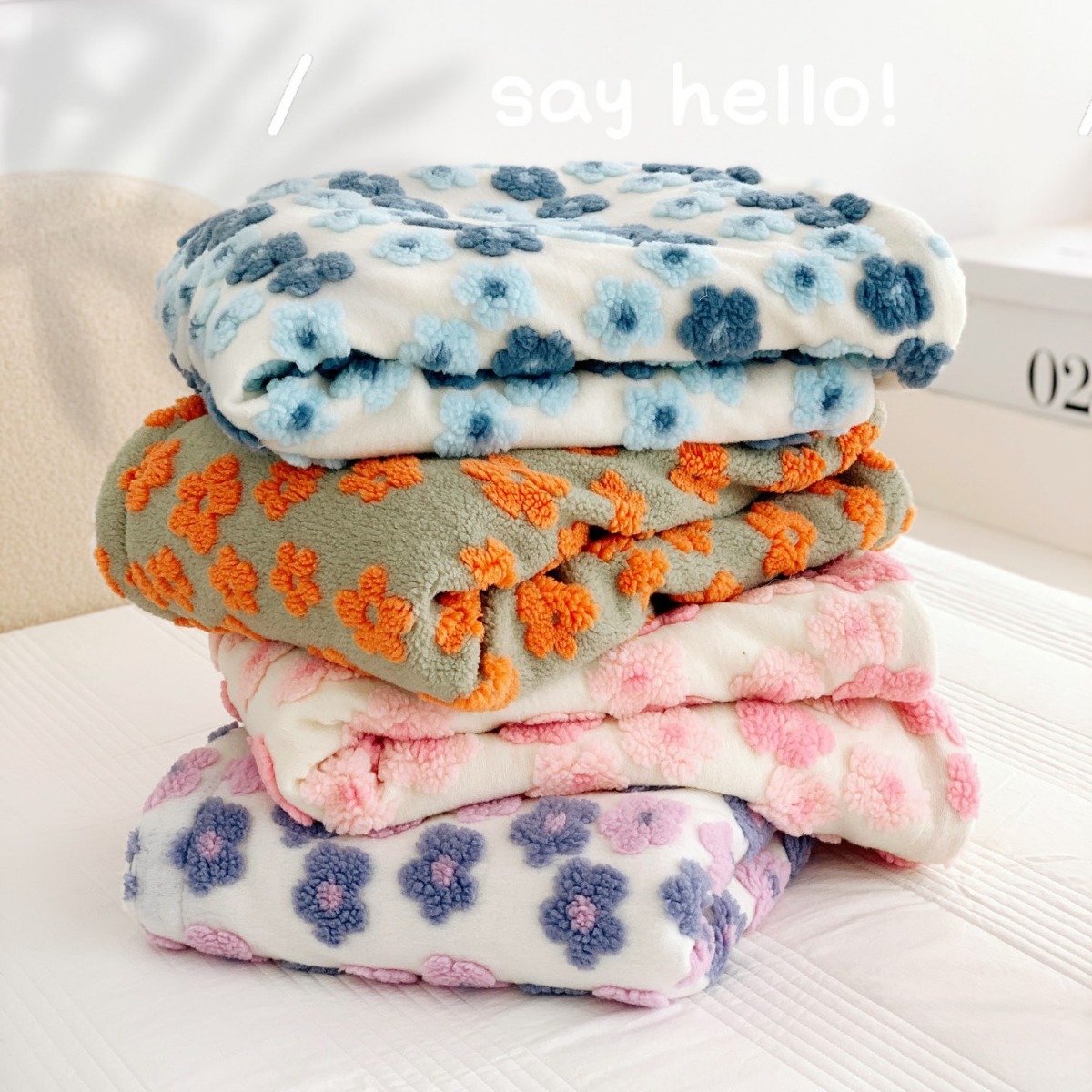I韓系の小さい花の立体ジャカードの柔らかい舒綿の綿毛の生地の畳のソファーの昼寝の保温の子羊の毛布