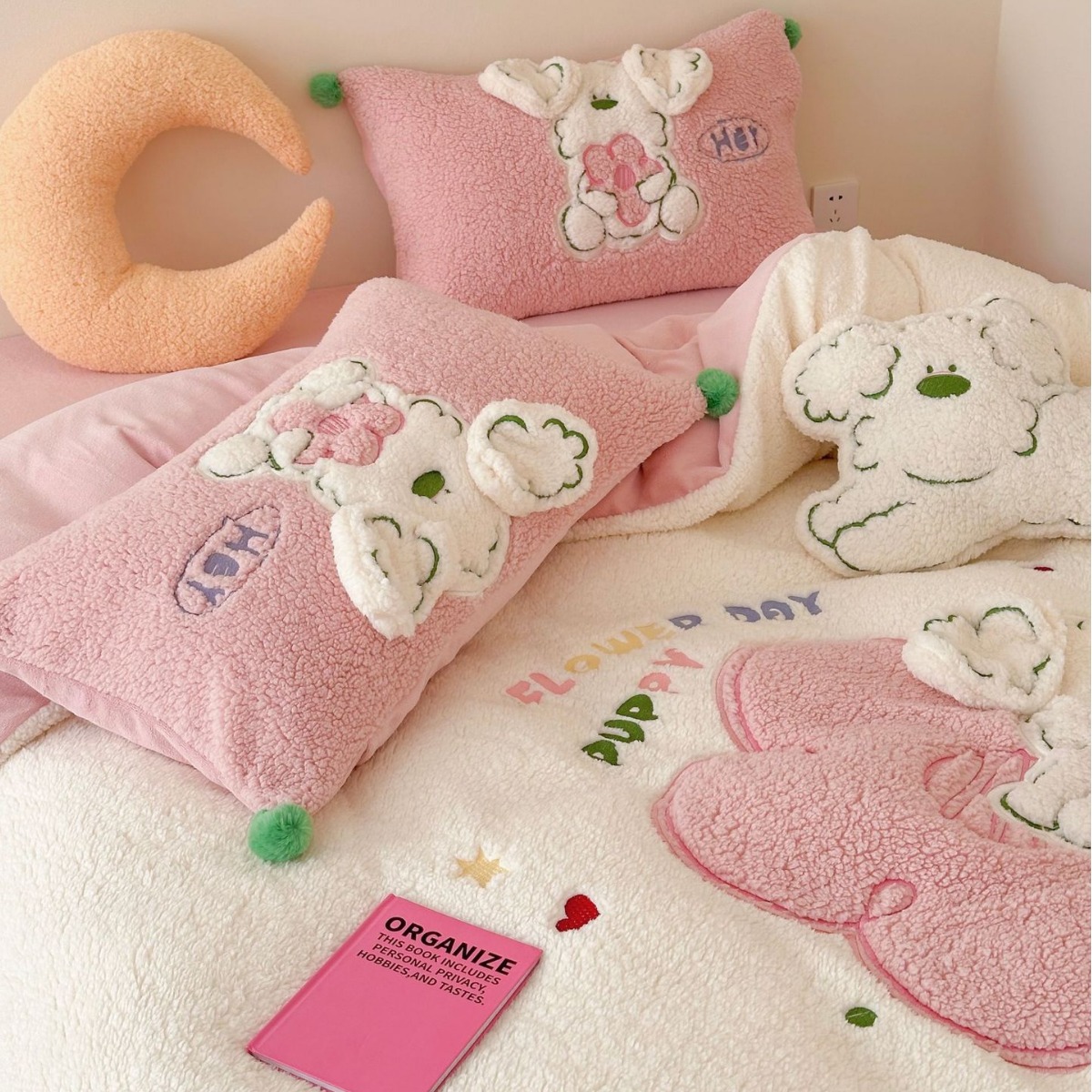 漫画の洋気花の犬の立体的な小さい耳は布の羊のぬいぐるみを貼って厚い羊の小毛の刺繍の3つの4つのセットを提供します。