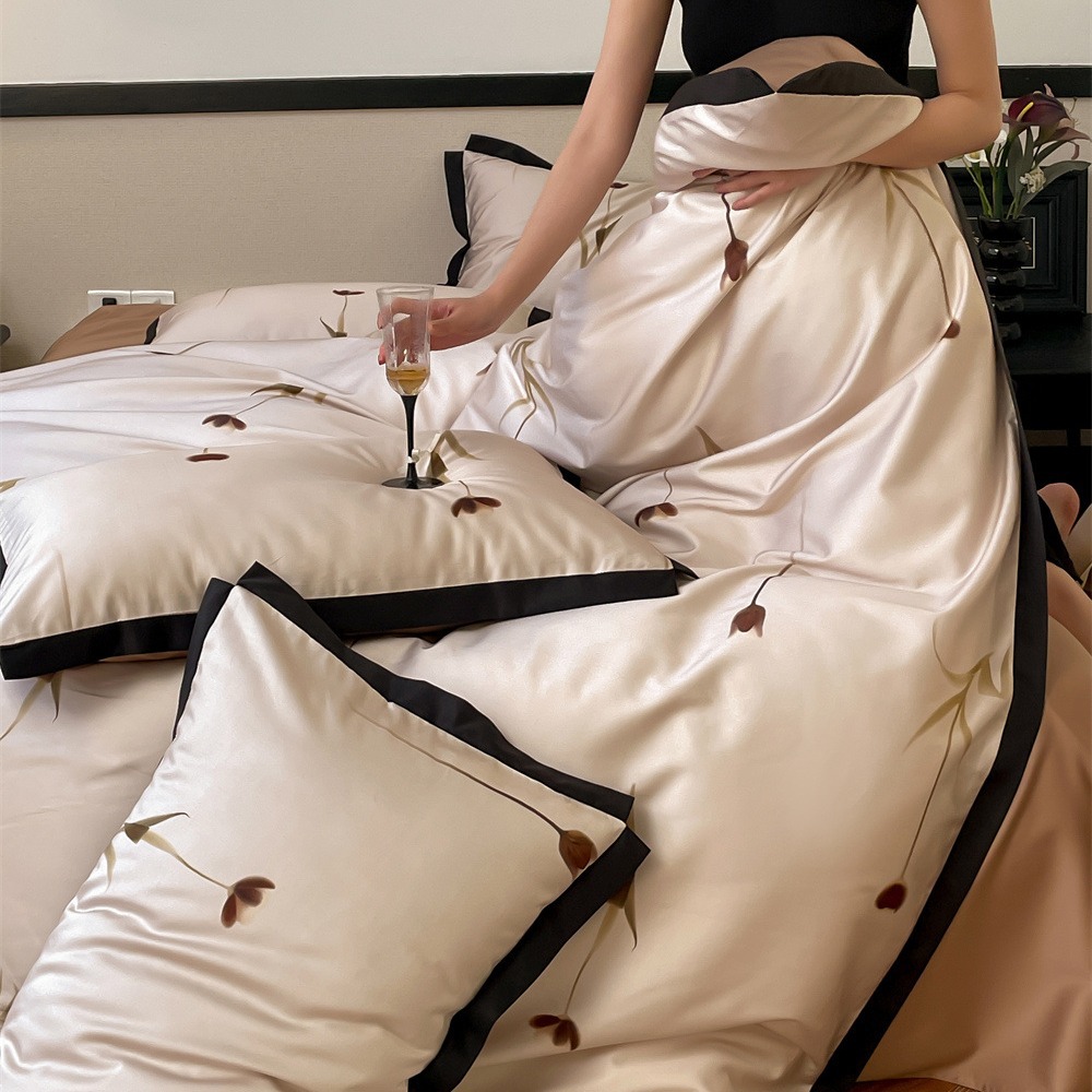 アメリカ綿40磨毛ファッション百合秋冬新商品シーツ丸角吊辺親肌ベッド用品家庭用四点セット