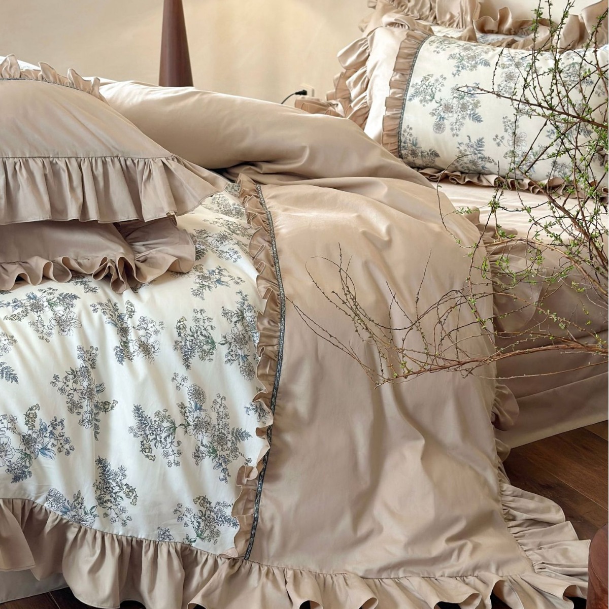 フランス風の小さな香りの上品な格調のプリント春夏の新商品の純綿の肌のベッドの寝具の4つのセット